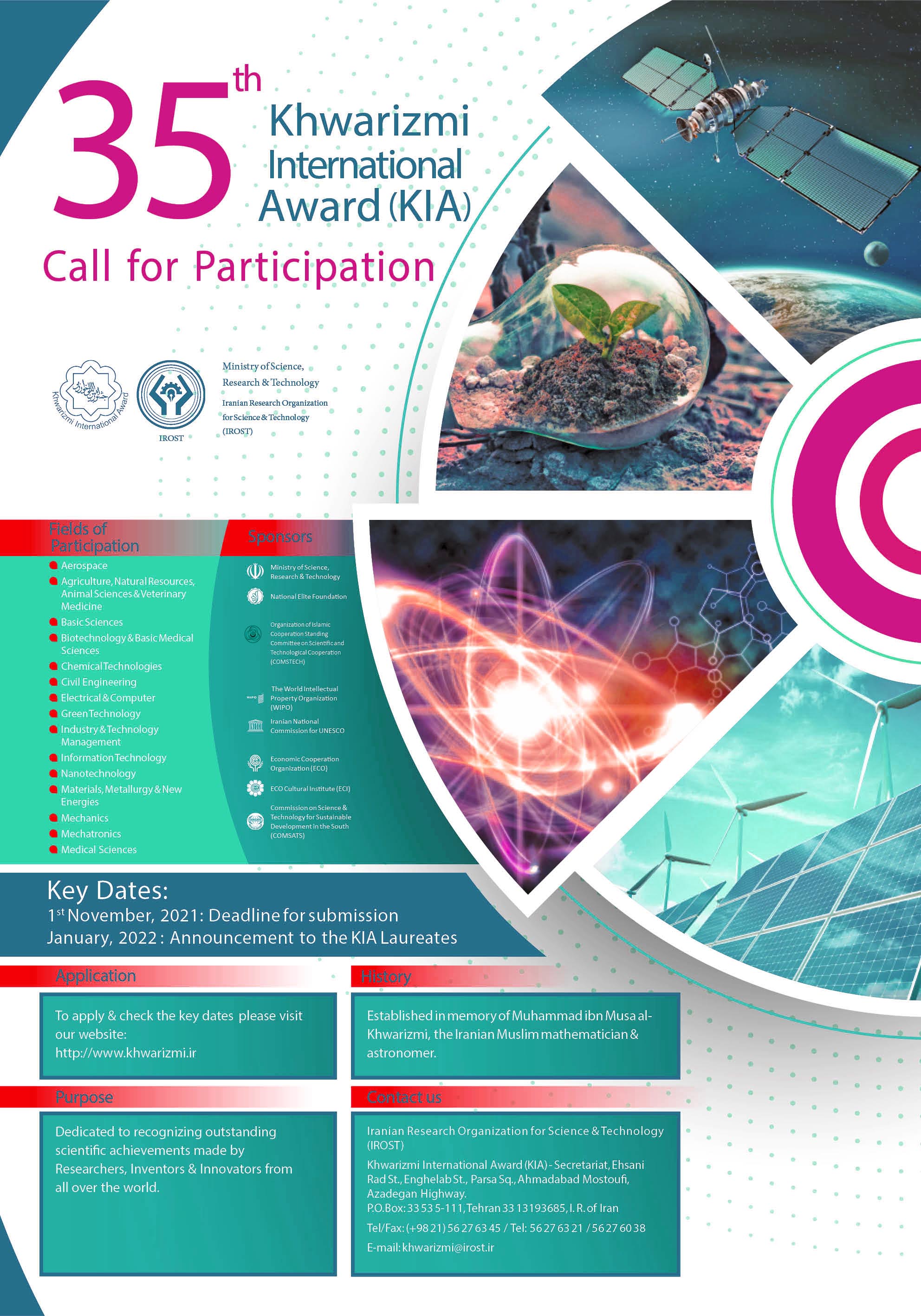 The executive Committee of  the 35th Edition of the Khwarizmi International Award is  pleased to call  for  applications.